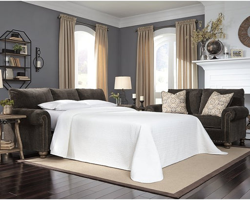 Everyone can have the best rest in the house with this queen sofa sleeper. Its nailhead trim puts the finishing touches on the traditional roll arm...