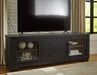 - Metal bar pulls with rustic texture in a dark pewter-tone finish