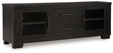 - 2 cabinets with glass front doors, each with an adjustable shelf