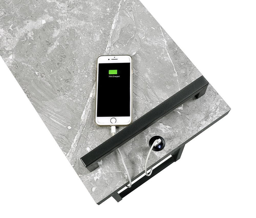 Earthy and modern, this accent table features a floating tabletop design and a minimal C-shaped silhouette. With a flush base that slips beneath seating, slide this table up to reach for refreshments or keep a handheld device close at hand. The sturdy steel base offers ample support for heavier objects, while the powder coated finish offers a contrasting element. Perfect for an industrial style living room, this functional accent table keeps your devices charged with a USB port in the back. A narrow tabletop makes this table perfect for compact spaces.