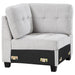 Customize a sectional that suits your space with a modern armless corner chair. In soft beige upholstery, it's the perfect centerpiece for your Georgina collection sectional sofa, creating a turn just where you need it to suit your living room. The corner features tufted cushions, one seat and two back, and sinuous spring decking under the seat, offering impressive comfort and support. Legs are a black finish tapered block style, complementing surrounding decor while offering stability and support. This sectional piece is constructed with Asian hardwoods and plywood for optimal strength and durability.
