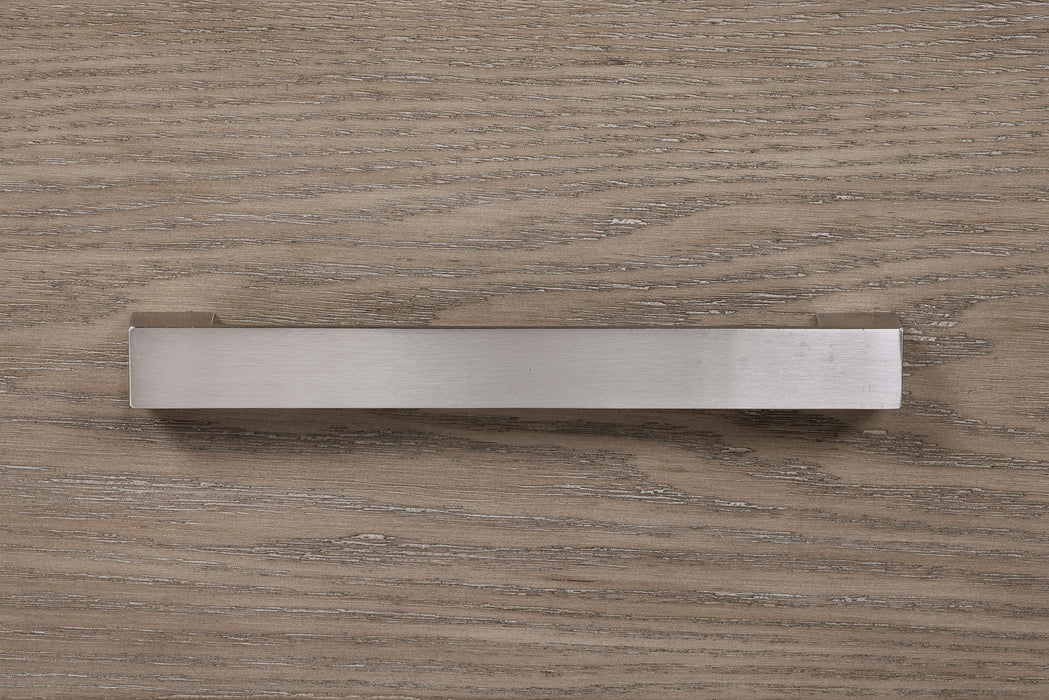 Chrome finish bar pulls add a touch of shine to the neutral barley brown finish of a modern five-drawer chest. Delivering ample storage with a comp...